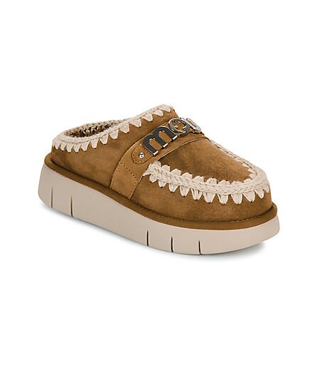 Leren Slippers Mou BOUNCE CLOG METAL LOGO Bruin Verkrijgbaar in damesmaat. 36,37,38,39,40,41 Schoenen > sandalen > damessandalen ...