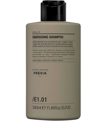 Verkwikkende en stimulerende haaruitval shampoo met druivenbladextract. Reinigt en versterkt de hoofdhuid op milde wijze en maakt hem zacht en fris. Werkt ondersteunend bij het voorkomen van haaruitval, tonifieert, stimuleert de microcirculatie van de hoofdhuid en verbetert de huidelasticiteit. De formulering van Energising bestaat voor 97,5% uit ingrediënten van natuurlijke oorsprong uit de biologische landbouw. Zonder kunstmatige kleurstoffen en zonder ingrediënten van dierlijke oorsprong. Toepassing: Verdeel en masseer in vochtig haar. 3-5 minuten laten inwerken en dan afspoelen, indien nodig herhalen. Previa Gecertificeerde biologische en biodynamische actieve bestanddelen uit Italië.Een boeket van exclusieve geuren geïnspireerd door de natuurEco-verpakking gemaakt van materialen afkomstig van suikerriet De Previa formules bevatten geen chemische tensio-actieve stoffen, conserveringsmiddelen, aardoliederivaten of kunstmatige kleurstoffen. Ingrediënten: Alle ingrediënten zijn afkomstig uit een gegarandeerde productieketen en worden verwerkt zonder gebruik van chemische stoffen. zonder sulfatenzonder parabenenzonder DEA/TEAS/MEAzonder EDTAzonder kunstmatige kleurstoffenzonder OEG/PPGzonder minerale oliënzonder Lanolinezonder thiazolinonzonder benzofenonzonder DMDM Allantoïne Imidazolidinyl Urea ...