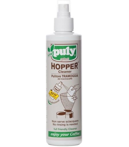 Pully Grind Hopper Cleaner is een spray waarmee je eenvoudig en snel koffieresidu en vet uit het reservoir van je koffiemolen of uit het reservoir van je koffieautomaat reinigt. Spray de hopper cleaner op een doekje en wrijf de binnenkant van het bonenreservoir schoon. Naspoelen met water ...