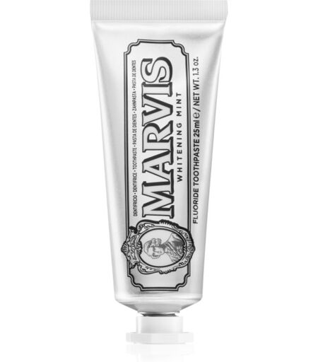 Marvis Whitening Mint, 25 ml, Whitening tandpasta Unisex, De tandpasta Marvis Whitening Mint is bedoeld voor zacht tanden bleken. Verwijdert effectief ongewenste pigmentatie van de tanden en beloont je bij regelmatig gebruik met een nog stralender glimlach. Kenmerken: bleekt tanden verwijdert tandsteen en tandplak verfrist de ademhaling Hoe te gebruiken: Poets je tanden grondig minstens 2 minuten lang. ...