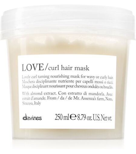 Davines Love Curl Hair Mask, 250 ml, Haarmasker voor Vrouwen , Het haarmasker is een onmisbare stap in het ritueel van de haarverzorging. Gun het haar een moment van regeneratie en het zal je belonen met vitaliteit en schoonheid. Kenmerken: hydrateert intensief regenereert het haar over de gehele lengte werkt in de diepte van de haarvezel is bijzonder geschikt voor golvend en krullend haar zorgt voor de soepelheid van het haar Hoe te gebruiken: Aanbrengen op vochtig, met shampoo gewassen haar. Laat het product het volgende aantal minuten inwerken: 10-15. Spoel vervolgens grondig met water. ...