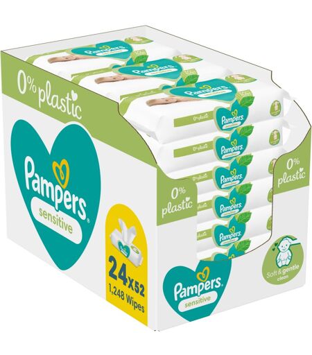 Pampers Sensitive Plastic Free Vochtige Reinigings Doekjes voor Kinderen voor Gevoelige Huid 24x52 st