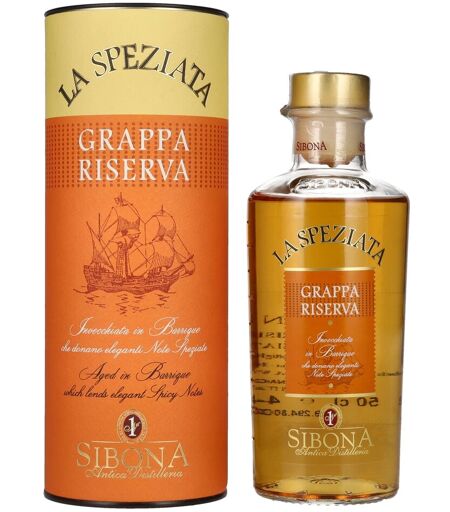 Sibona GRAPPA RISERVA La Speziata 44% Vol. 0,5l in geschenkverpakking