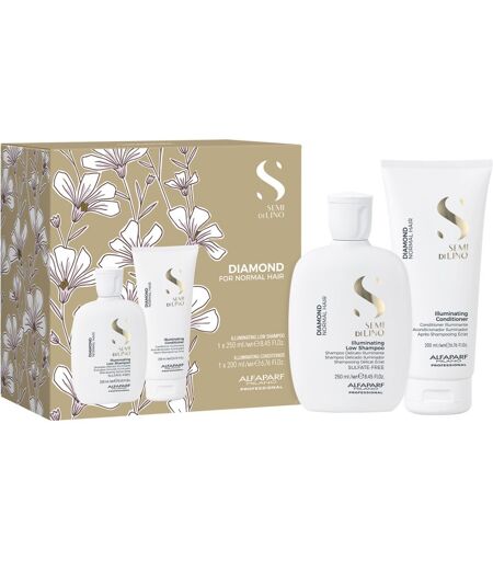 Alfaparf Milano Semi di Lino Diamond Kit, 2 st, Cosmetische sets voor Vrouwen , Alles voor prachtig haar in één pakket. De productenset Alfaparf Milano Semi di Lino Diamond Kit bevat niet één, maar meerdere producten die helpen bij het creëren of verrijken van een regelmatige haarverzorgingsroutine. Dit pakket vol haarverzorging zal jou, of als cadeau je dierbaren, beslist blij maken. Inhoud van de set: Alfaparf Milano Semi di Lino Diamond Illuminating Verhelderende Shampoo voor Normaal Haar 250 ml Alfaparf Milano Semi di Lino Diamond Illuminating Verhelderende Conditioner voor Glanzend en Makkelijk Kambaar Haar 200 ml Kenmerken: wast het haar en reinigt de hoofdhuid geeft het haar een verblindende glans beschermt je haar tegen uv-straling voor natuurlijk en gekleurd haar strijkt de haarvezels glad het haar voelt zacht aan Hoe te gebruiken: Gebruik elk product uit de cosmeticaset volgens de gebruiksaanwijzing. ...