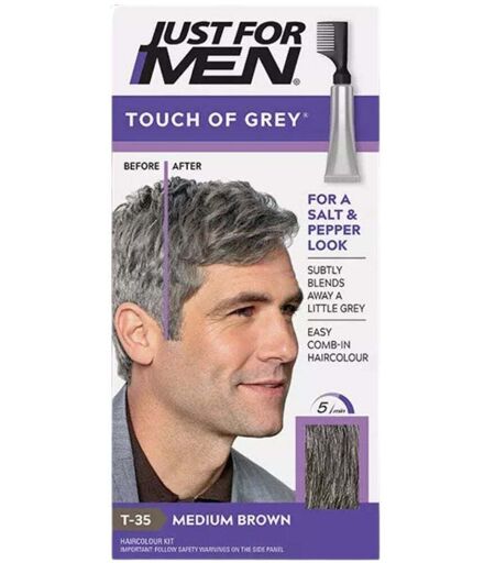 Just for Men Touch of Grey Gradual Hair Coloring for a Salt and Pepper Look 1 un. T-35 Medium Brown