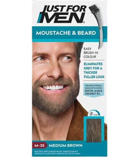 Just for Men Moustache and Beard Gel-Based Hair Dye Easy Application 1 un. M-35 Medium Brown