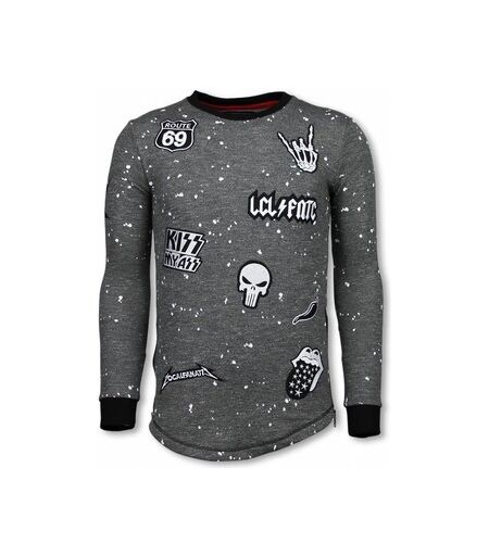 Local Fanatic Sweater Longfit Embroidery Patches Rockstar Grijs