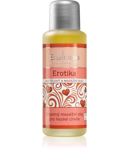 Saloos Bio Body And Massage Oils Erotika, 50 ml, Erotische massageoliën en -gels voor Vrouwen , De lichaamsolie Saloos Bio Body And Massage Oils geeft je huid een intensieve hydraterende en regeneratieve verzorging. Kenmerken: hydrateert diep laat de huid soepel en elastisch achter absorbeert snel laat geen vette film achter op de huid voedt en verzorgt de huid Hoe te gebruiken: Masseer een kleine hoeveelheid grondig over de huid van het hele lichaam. ...