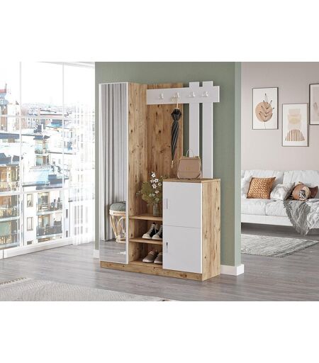 Halmeubel MIROTA is de perfecte combinatie van functionaliteit en design. Met zijn vele opbergruimtes is dit een grote aanwinst voor je inkomhal. En het meubel is nog elegant ook! Details Kleur (tint): Wit, Natuurlijk licht Materiaal: Spaanplaat Afwerking: Gemelamineerd 3 deuren Draaideur Deuropening mechanisme: Push to open Soort kast: 2 nissen 1 spiegel Installatietype: Om op te zetten Meubel om zelf in elkaar te zetten : Maximaal draagvermogen van de vakken: 3 kg : Afmetingen Lengte: 113.6 cm Hoogte: 179.7 cm Diepte: 37.5 cm Levering De levertijd van dit product zal worden bevestigd in de winkelwagen. Wij raden u aan om bij de levering goed het aantal geleverde pakketten te controleren. Pakket Pakket nummer 1: Lengte 193 cm, Breedte 46 cm, Hoogte 12 cm, Gewicht 46 kg, Pakket nummer 2: Lengte 122 cm, Breedte 48 cm, Hoogte 10 cm, Gewicht 25 kg, ...