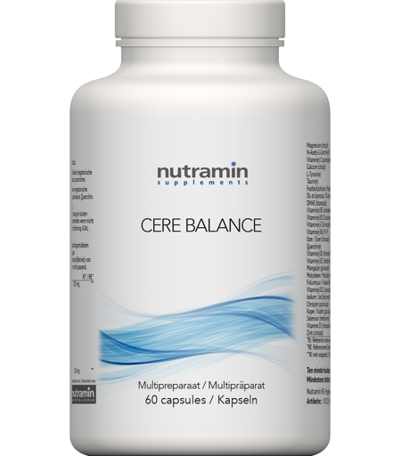 Nutramin Cere Balance is een multivitaminen- en -mineralenpreparaat met ingrediënten die bevorderend zijn voor lichaam en geest. Aan deze multi is onder andere ijzer, jodium en zink toegevoegd, die van belang zijn voor een normaal geheugen, terwijl magnesium goed is voor de leerprestaties en het ...