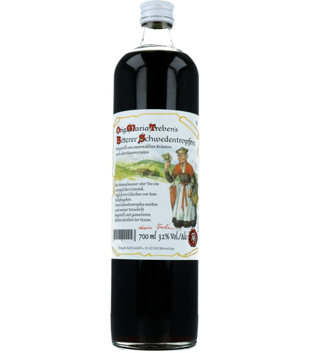 Maria Treben Schweden Tropfen Bitter Elixer (700ml) is een traditioneel kruidenelixer gebaseerd op een eeuwenoud Zweeds recept. Dit natuurlijke elixer bevat een zorgvuldig samengestelde mix van kruiden en wordt al generaties lang gebruikt. De pure kruidenextracten worden volgens authentieke methoden ...