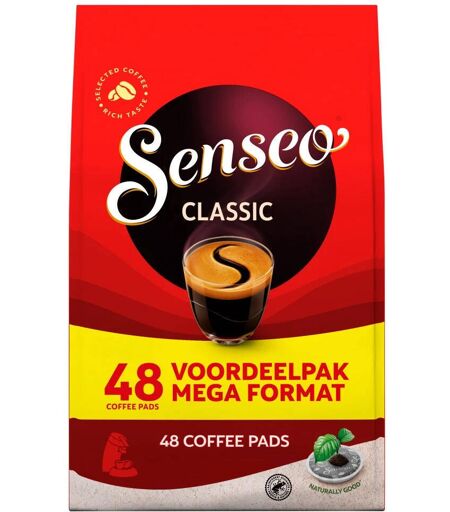 Een evenwichtige koffie van medium gebrande Arabica- en Robustabonen voor een rijke smaak, met een heerlijke crema laag waar je elke dag opnieuw van kunt genieten. Nu met meer Arabica!   Geschikt voor Senseo® apparaten. ...