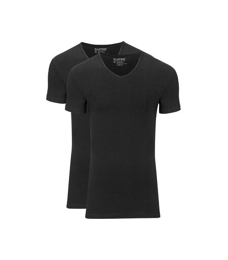 Slater T-shirt 2-pack Stretch V-hals T-shirt Zwart Zwart