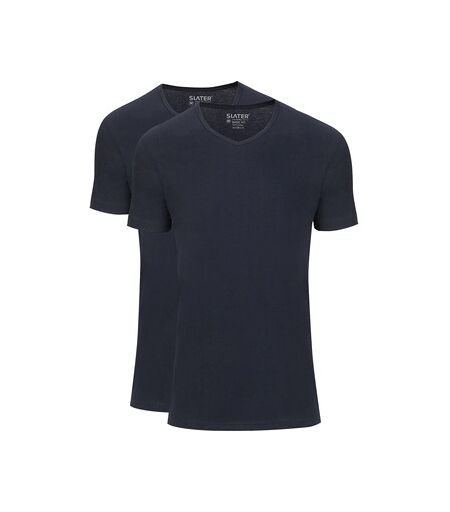 Slater T-shirt 2-pack Basic Fit T-shirt V-hals Navy Blauw
