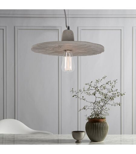 De Paper is een prachtige moderne hanglamp gemaakt van massief beton en heeft daardoor een warme leemkleurige uitstraling. Deze lamp heeft aan de onderkant een bijzondere afwerking/reliëf van gekreukt papier wat hem een mooie industriële look geeft. Doordat de lichtbron direct zichtbaar is leent deze hanglamp zich uitstekend voor het gebruiken van een mooie LED lichtbron, zoals de Spiral gold of Edison LED lamp. De hanglamp wordt geleverd inclusief kabel en plafondplaat. ...