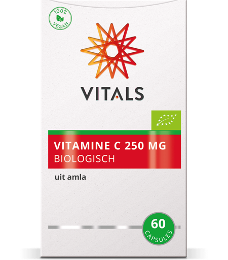 Vitals Vitamine C 250mg Biologisch Capsules (60 stuks) is een hooggedoseerd voedingssupplement, geproduceerd uit biologische amla. Deze Indiase kruisbes staat bekend om zijn natuurlijke en zeer hoge gehalte aan vitamine C. Met 250 mg per capsule is dit een uitzonderlijk hoog gedoseerd supplement. ...