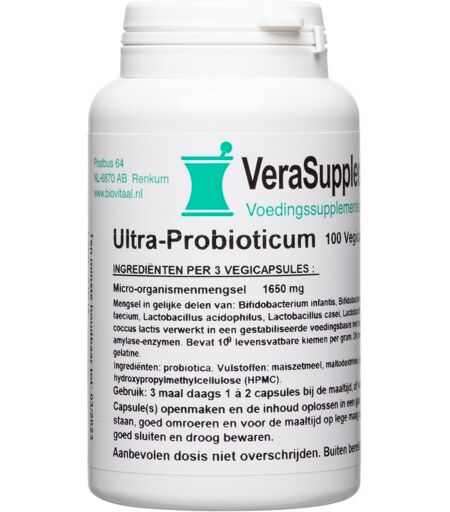 VeraSupplements Ultra Probioticum Capsules is een modern multi-species complex, met negen stammen van bacteriën die van nature voorkomen in het spijsverteringsstelsel van de mens en een kiemgetal van minimaal 109 levensvatbare kiemen per gram. Voor een optimaal synergisme is bewust gekozen voor een ...