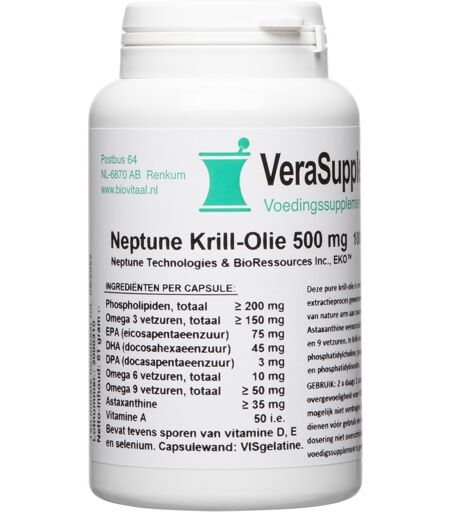 VeraSupplements Neptune Krill-Olie 500 mg Capsules bevat krill-olie van de hoogwaardige Neptune-kwaliteit (EKO™). Deze krill-olie bevat waardevolle voedingsstoffen voor hart en bloedvaten, huid, ogen, gewrichten, hersenen en het hormonale systeem. Neptune Krill-olie wordt gewonnen uit de ...
