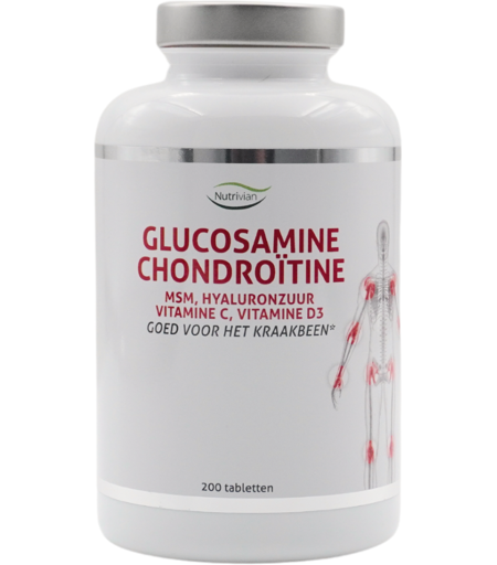 Nutrivian Glucosamine Chondroïtine Tabletten (200 stuks) is een voedingssupplement en bevat een unieke mix van 6 ingrediënten: Glucosamine, chondroïtine, MSM, hyaluronzuur, vitamine C en vitamine D3.Nutrivian Glucosamine Chondroïtine Tabletten:Vitamine C speelt een rol bij de aanmaak/opbouw van ...
