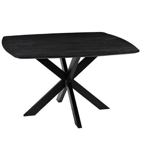 Moderne eetkamertafel zwart mangohout met ruim vierkant tafelblad met subtiel afgeronde hoeken. Gezellige sfeervolle en stoere tafel met fraai design onderstel waardoor er veel ruimte is om stoelen te plaatsen.Deze eettafel heeft de afmeting LxBxH:130 x 130 x 76 cmKleurcombinatie: Tafelblad zwart Onderstel zwartMaterialen: Tafelblad massief mangohout gezandstraald en gelaktOnderstel van metaal poedercoating ...