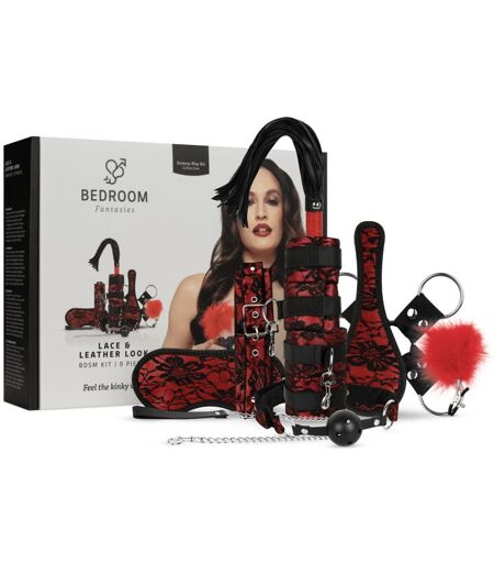 Bedroom Fantasies - Lace & Leather Look - 8-delige Bondage Set - Rood