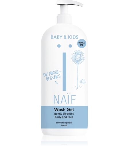 Naif Baby & Kids Wash Gel reinigingsgel voor kinderen en baby‘s voor Lichaam en Gezicht Refill Me 500 ml