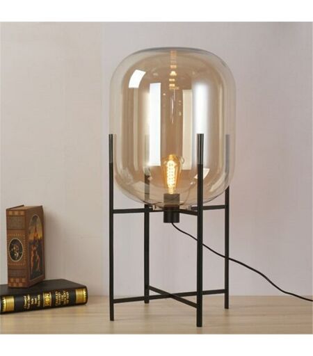 Groenovatie Amber Glazen Tafellamp XL, Metaal, E27 Fitting, ⌀34x74cm, Zwart