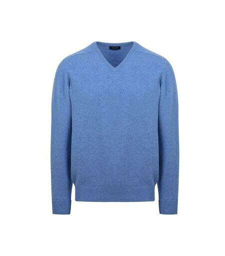 William Lockie Sweater V-Hals Lamswol Jeans Melange Blauw