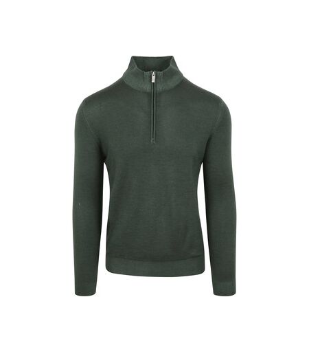 R2 Amsterdam Sweater R2 Half Zip Trui Merino Wol Donkergroen Groen