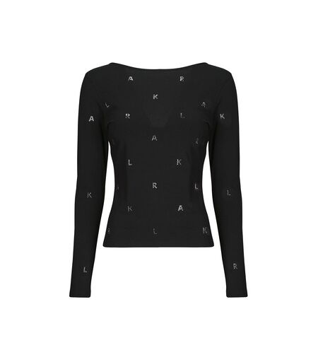 Karl Lagerfeld T-Shirt Lange Mouw RHINESTONE KARL OPEN BACK LSLV Zwart