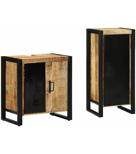 vidaXL Badkamermeubelset 2 pcs Bruin en zwart Massief Mango Hout