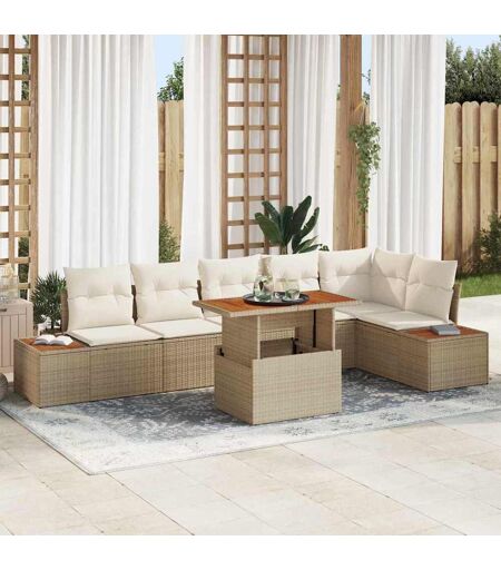vidaXL Tuin Eetset met kussen 7 pcs Beige en Crème 100 x 55 x 73 cm