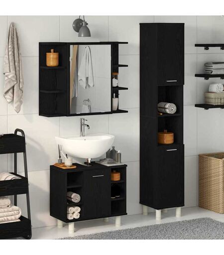 vidaXL Badkamermeubelset 3 pcs Zwart 30 x 30 x 179.5 cm Bewerkt hout