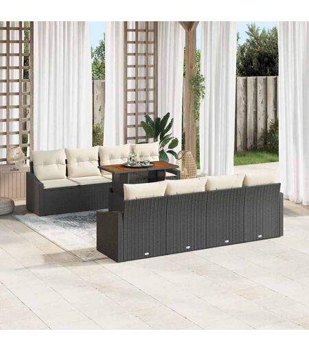 vidaXL Tuin Eetset met kussen 9 pcs Zwart en Crème 100 x 55 x 73 cm