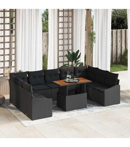 vidaXL Tuin Eetset met kussen 10 pcs Zwart en Bruin 100 x 55 x 73 cm