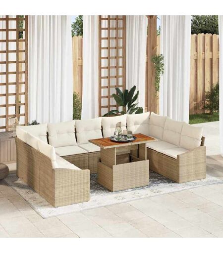 vidaXL Tuin Eetset met kussen 10 pcs Beige en Crème 100 x 55 x 73 cm
