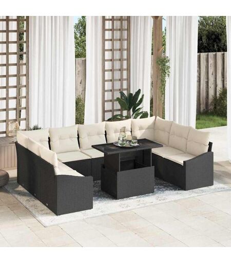 vidaXL Tuin Sofa Set met kussen 10 pcs Zwart en crème 100 x 55 x 73 cm