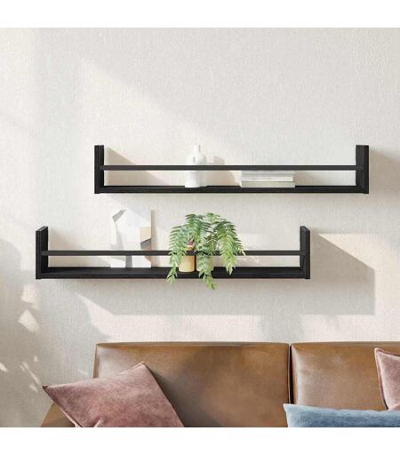 vidaXL Wandplank 2 pcs Zwart eiken 80 x 16 x 14 cm Bewerkt hout