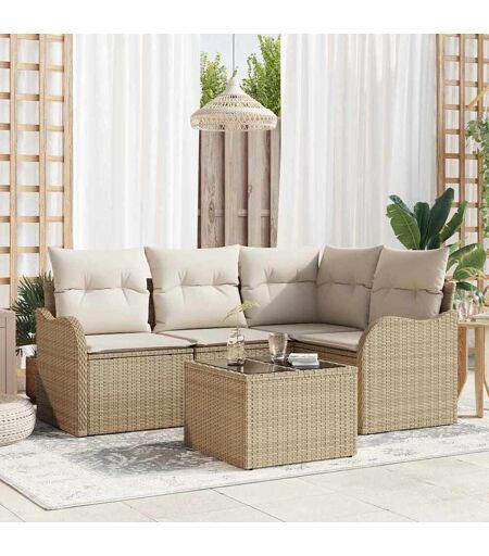 vidaXL Tuin Sofa Set met kussen 5 pcs Beige Poly riet