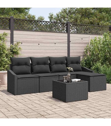 vidaXL Bankstel met kussen 6 pcs Zwart poly rattan