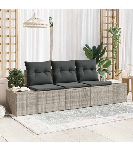 vidaXL Bankstel met kussen 3 pcs Lichtgrijs poly rattan