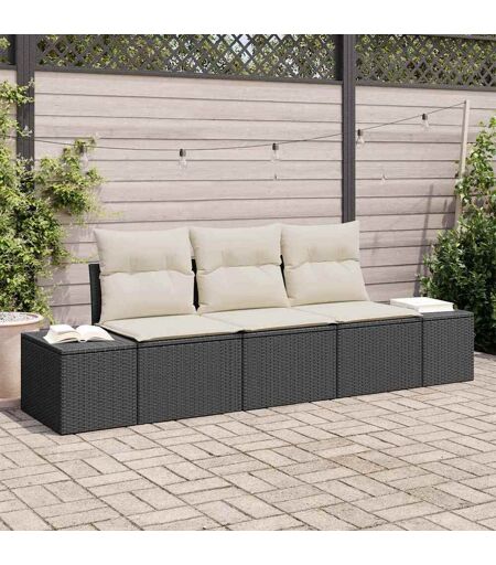 vidaXL Bankstel met kussen 3 pcs Zwart poly rattan