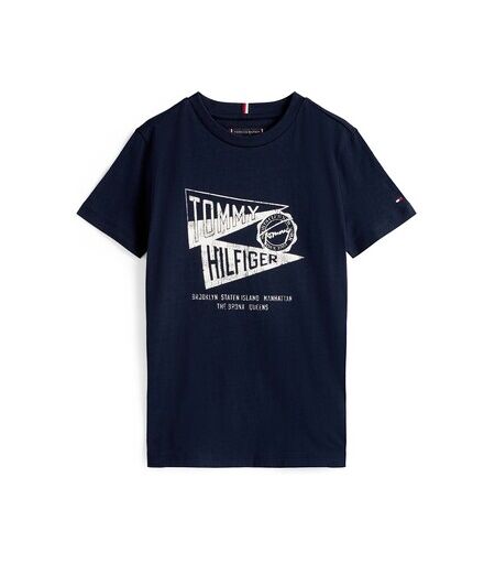 T-shirt Tommy Hilfiger Textured Graphic Print Tee Ss Blauw Verkrijgbaar in jongensmaat. 8 jaar,10 jaar,12 jaar,14 jaar Kleding > Shirts > T-shirts > Jongens t-shirts ...