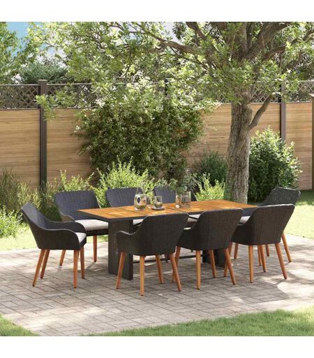 vidaXL Tuin Eetset met kussen 9 pcs Zwart en bruin poly rattan
