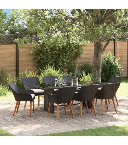 vidaXL Tuin Eetset met kussen 9 pcs Zwart poly rattan