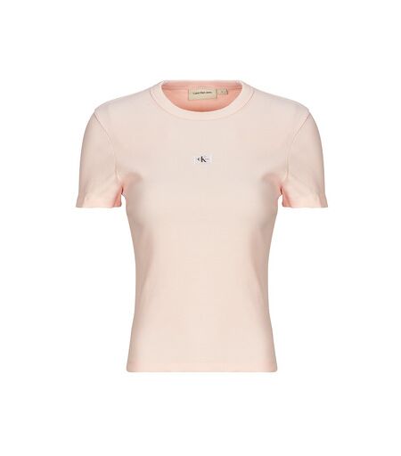 T-shirt Calvin Klein Jeans WOVEN LABEL RIB FITTED TEE Roze Verkrijgbaar in damesmaat. EU S,EU M,EU L,EU XL,EU XS Kleding > Shirts > t-shirts > Dames t-shirts ...