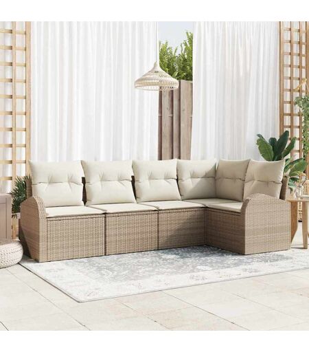 vidaXL Tuin Sofa Set met kussen 5 pcs Beige en wit Poly riet