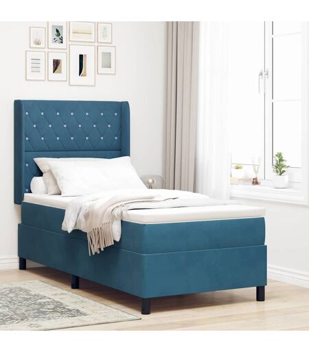 vidaXL LED Boxspring Bed met Matras Geruit Blauw 100 x 200 cm Fluweel
