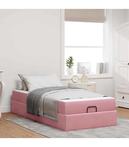 vidaXL Bedframe met matras met opslag Roze 90 x 200 cm Fluweel