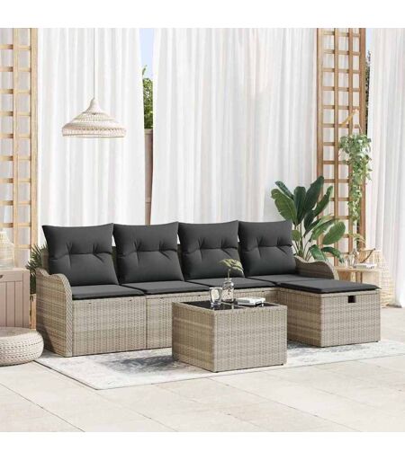vidaXL Tuin Sofa Set met kussen met opslag 6 pcs Lichtgrijs Poly riet